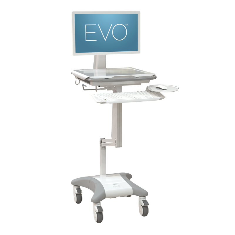 EVO SE 20 delivers every advantage of Jaco EVO medical computer carts—Comfort Glide height adjustment, precision-balanced maneuverability, research-based ergonomics, UV-ready infection control and more—all in a light-weight, durable, corded medical cart for a thin-client/ zero client CPU and LCD display. With its small footprint and 8-foot radius of mobility, EVO SE 20 is a flexible and cost-effective option for patient rooms that can’t accommodate a wall mount workstation.